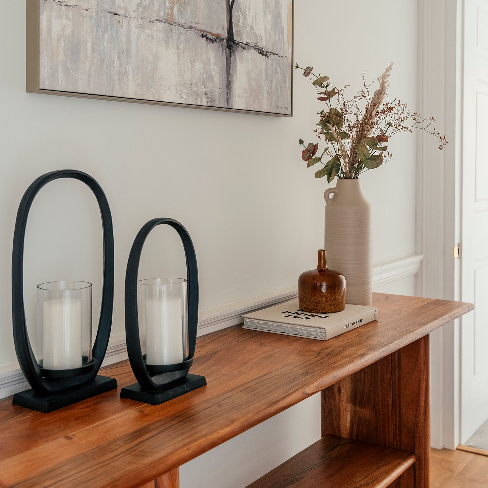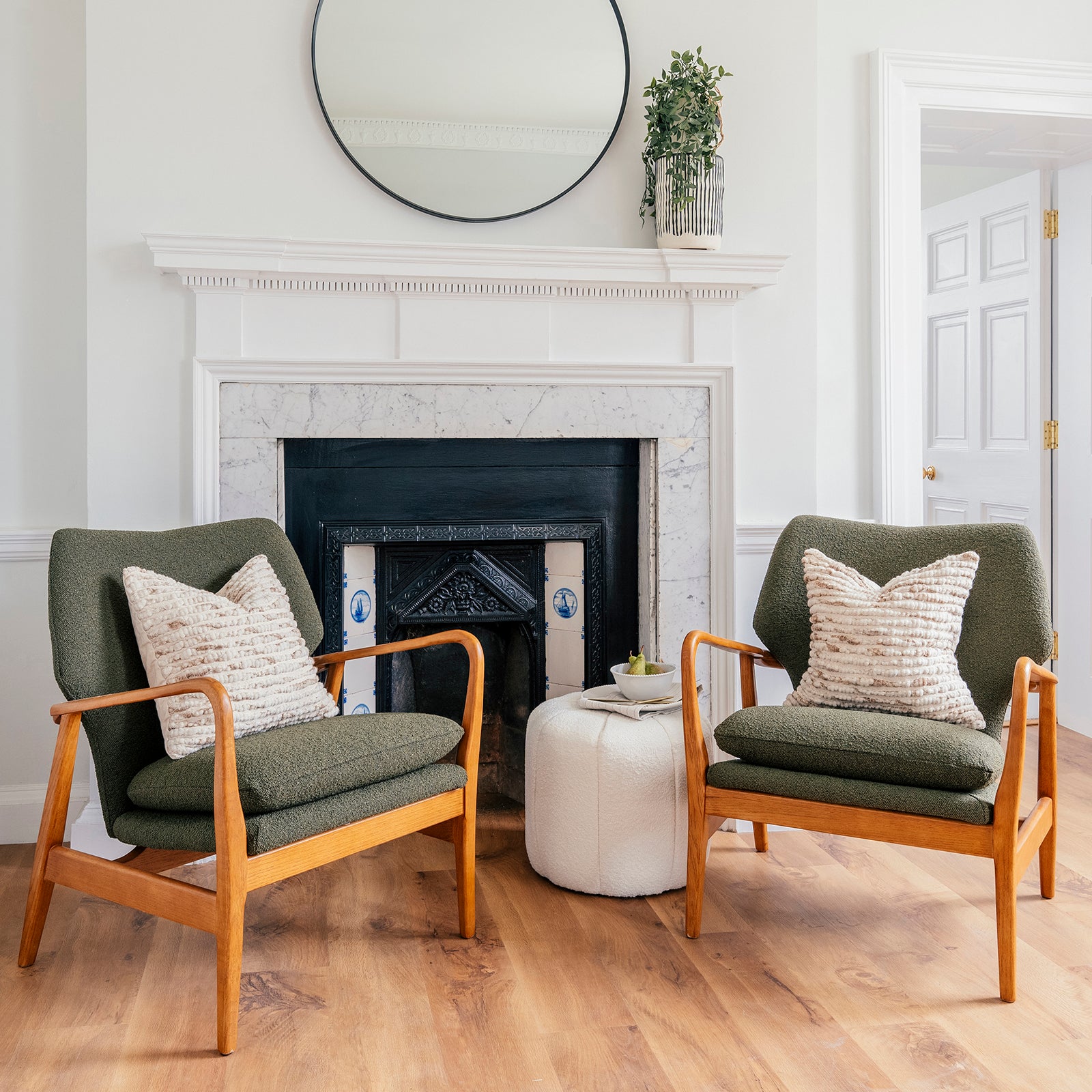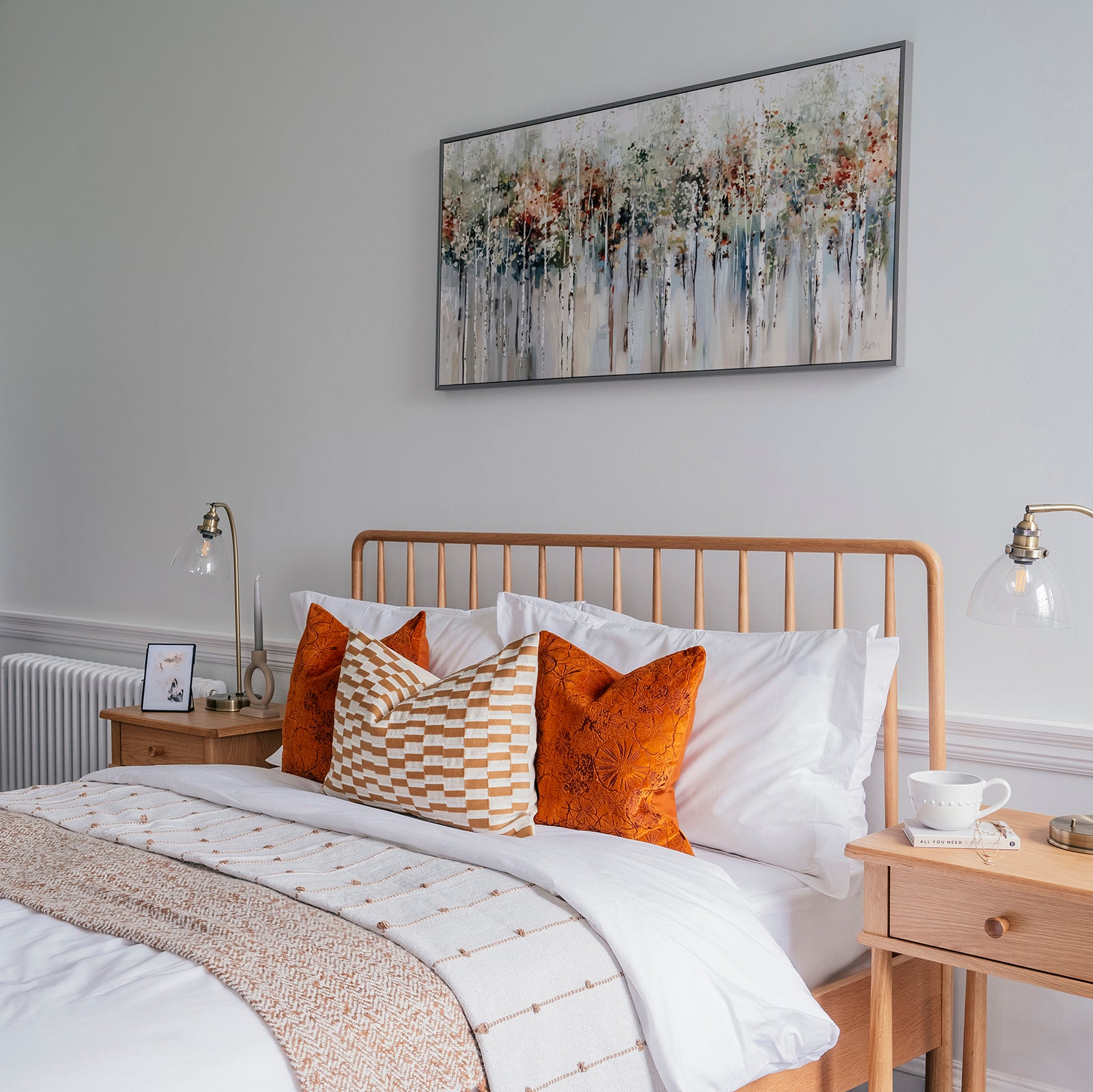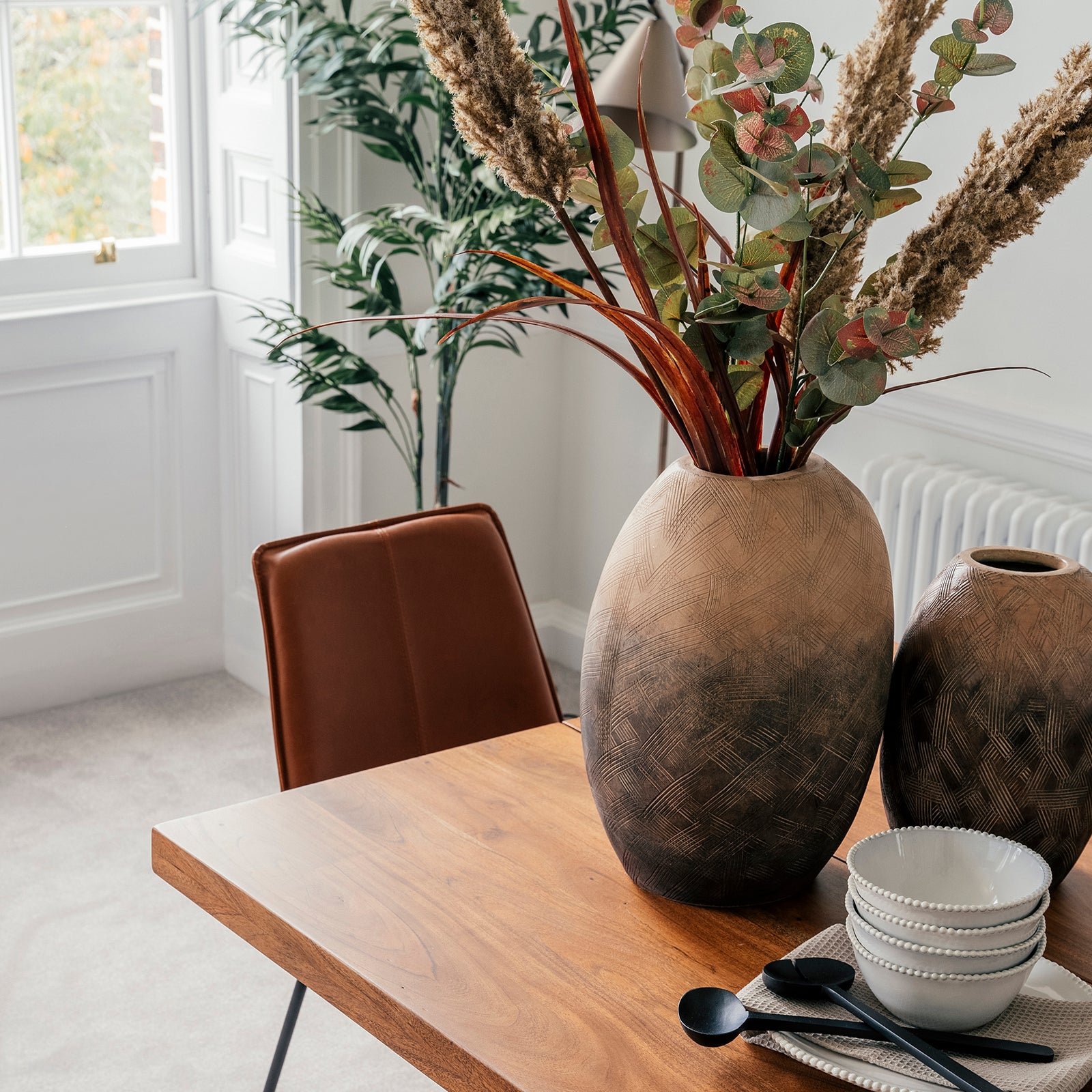 We have designed five staging schemes on behalf of our client for this historical site, to showcase how potential buyers could use each space and visualize themselves at home - whether that be in one of the 2 or 3-bedroom mews style houses, or one of the spacious 2-bedroom apartments in the Manor House. Brizes Park has pituresque surroundings on the estate which we wanted to incorpate within the design schemes, using organic shades of green and rich wood finishes to bring an element of the outside-in. Small touches of antique brass in the lighting and decorative accessories give a subtle luxurious finish, whilst using textured ceramics and plenty of foliage has created a natural and calming ambience, complimenting this tanquil estate beautifully.