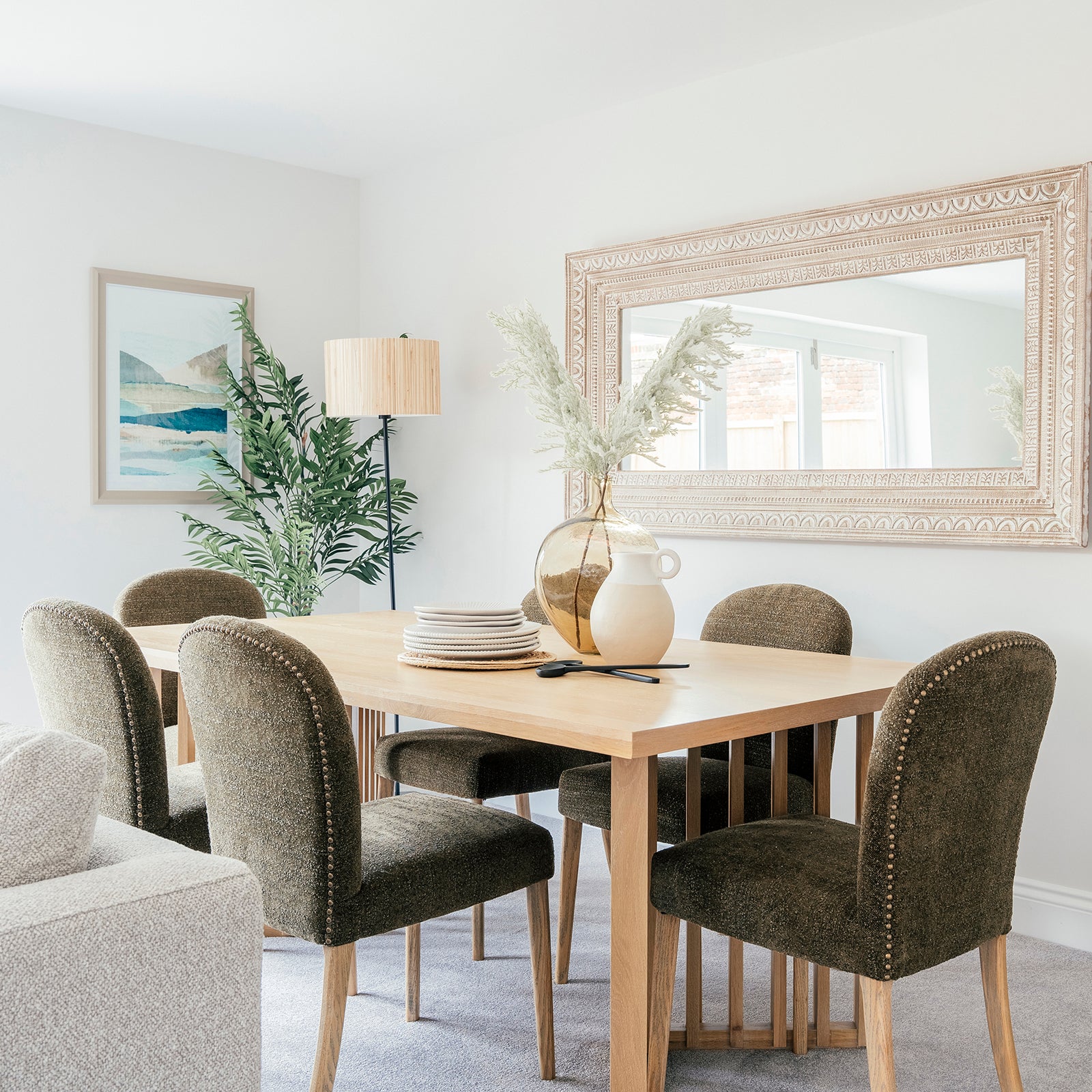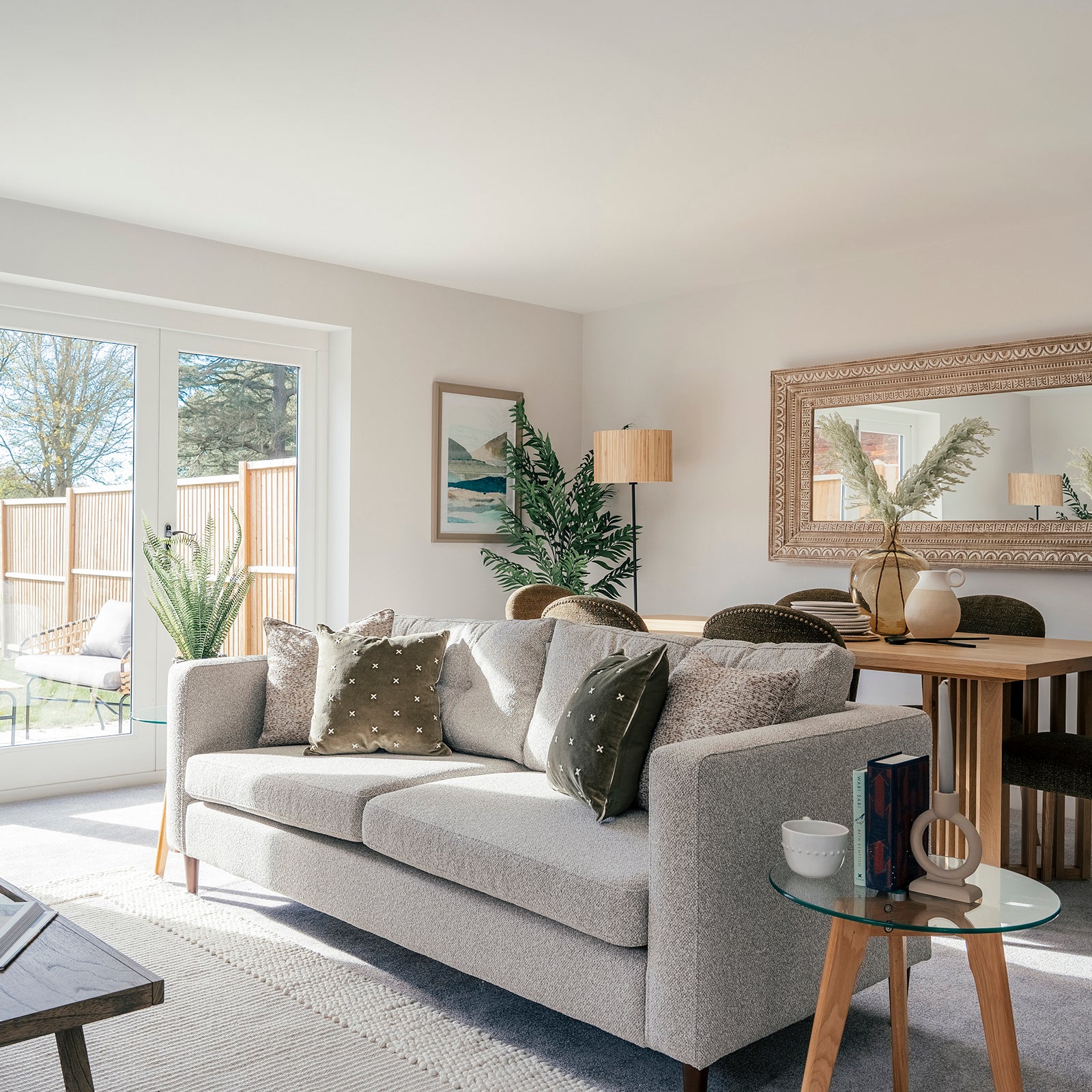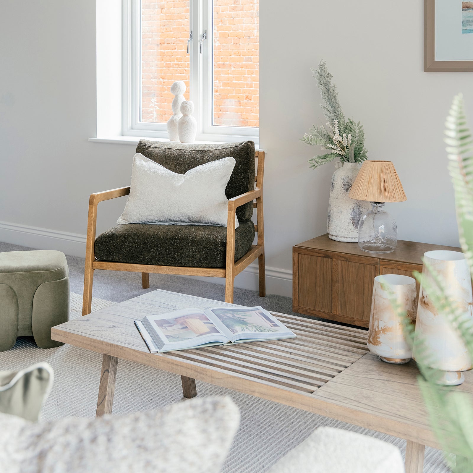 We have designed five staging schemes on behalf of our client for this historical site, to showcase how potential buyers could use each space and visualize themselves at home - whether that be in one of the 2 or 3-bedroom mews style houses, or one of the spacious 2-bedroom apartments in the Manor House. Brizes Park has pituresque surroundings on the estate which we wanted to incorpate within the design schemes, using organic shades of green and rich wood finishes to bring an element of the outside-in. Small touches of antique brass in the lighting and decorative accessories give a subtle luxurious finish, whilst using textured ceramics and plenty of foliage has created a natural and calming ambience, complimenting this tanquil estate beautifully.