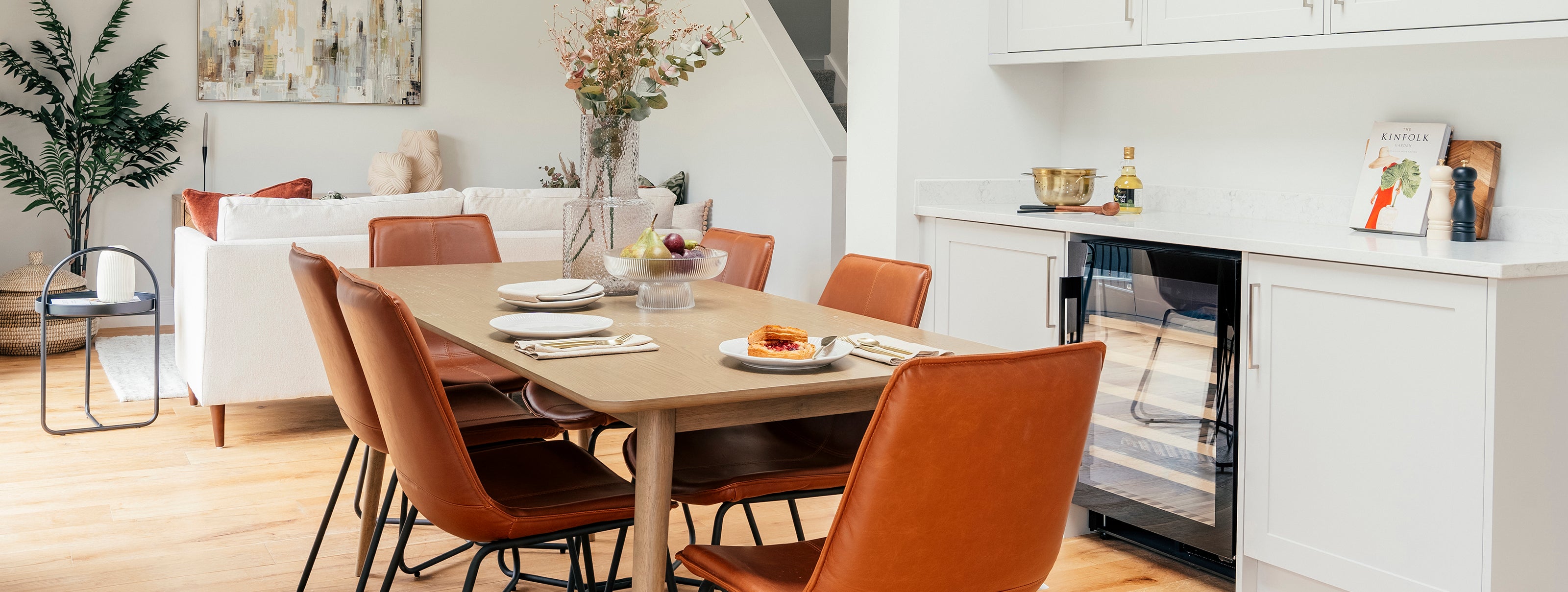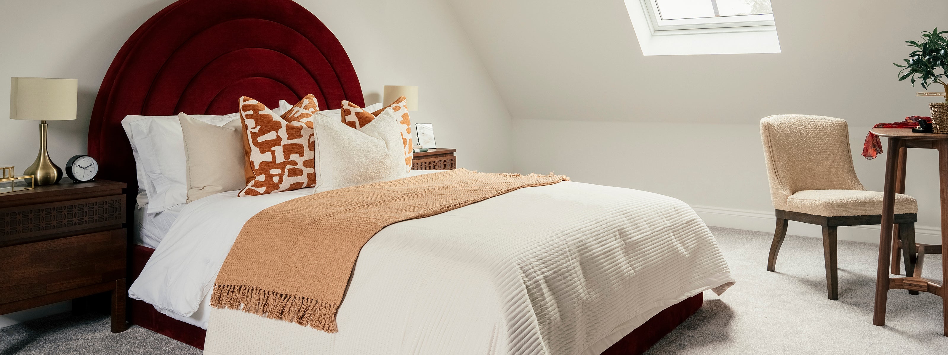 We have designed five staging schemes on behalf of our client for this historical site, to showcase how potential buyers could use each space and visualize themselves at home - whether that be in one of the 2 or 3-bedroom mews style houses, or one of the spacious 2-bedroom apartments in the Manor House. Brizes Park has pituresque surroundings on the estate which we wanted to incorpate within the design schemes, using organic shades of green and rich wood finishes to bring an element of the outside-in. Small touches of antique brass in the lighting and decorative accessories give a subtle luxurious finish, whilst using textured ceramics and plenty of foliage has created a natural and calming ambience, complimenting this tanquil estate beautifully.