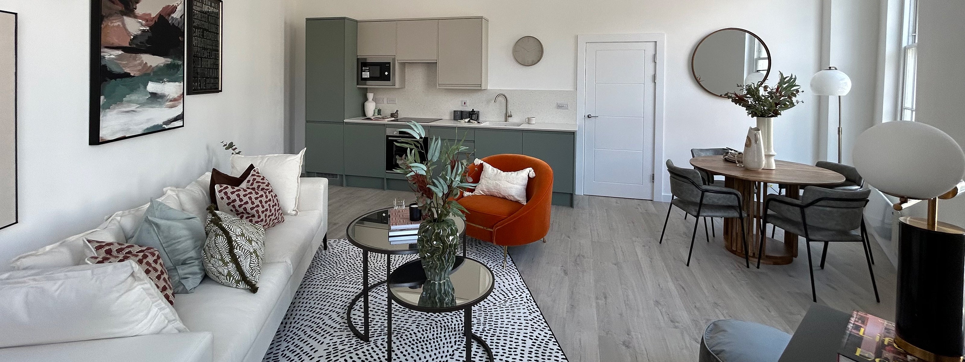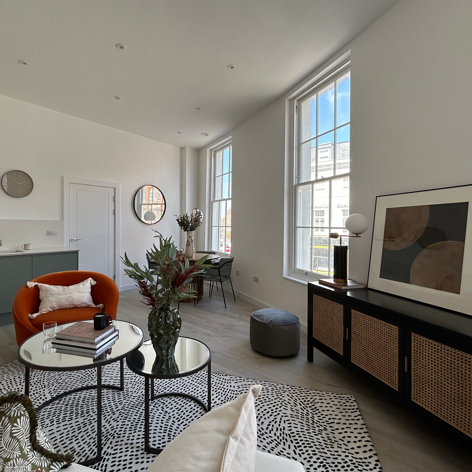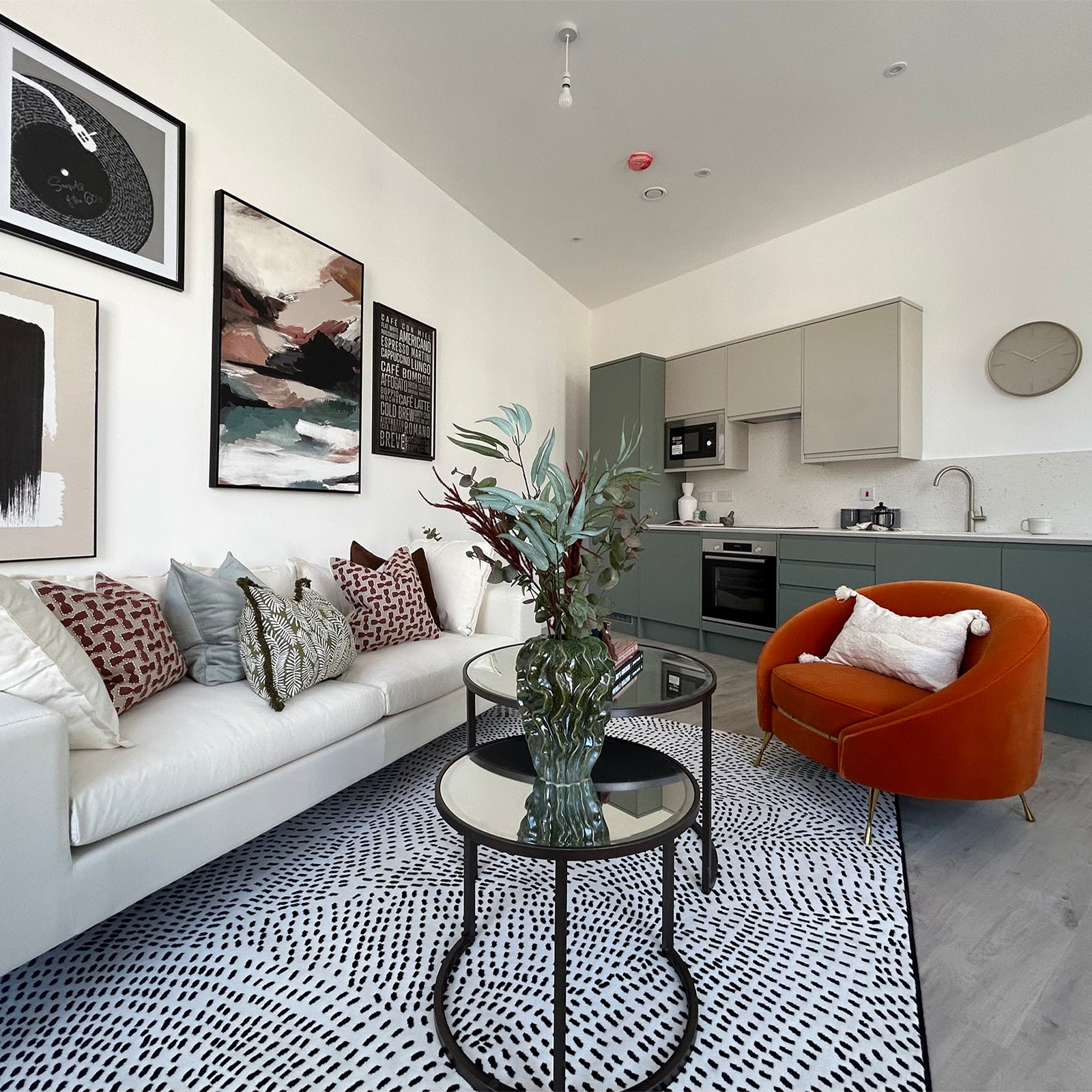 Tasked with creating a 1 bedroom show apartment for this new development of 5 apartments. The brief was to compliment the level of finish of the building exterior, whilst also incorporating a combination of urban and natural style. Perfect for younger buyers, we also furnished the common areas of the development.