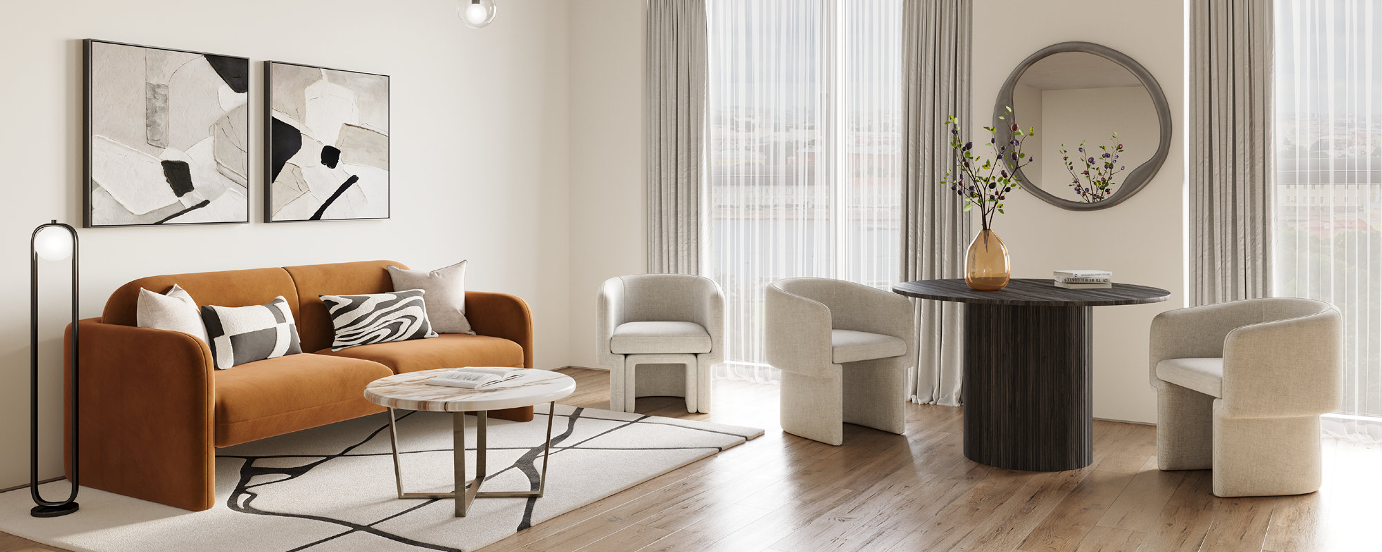 Once you've selected a furniture package, add those finishing touches that truly make your space your own. From artwork to luxurious soft furnishings like cushions, throws, and rugs, we offer a wide range of accessories to enhance the look and feel of your home.