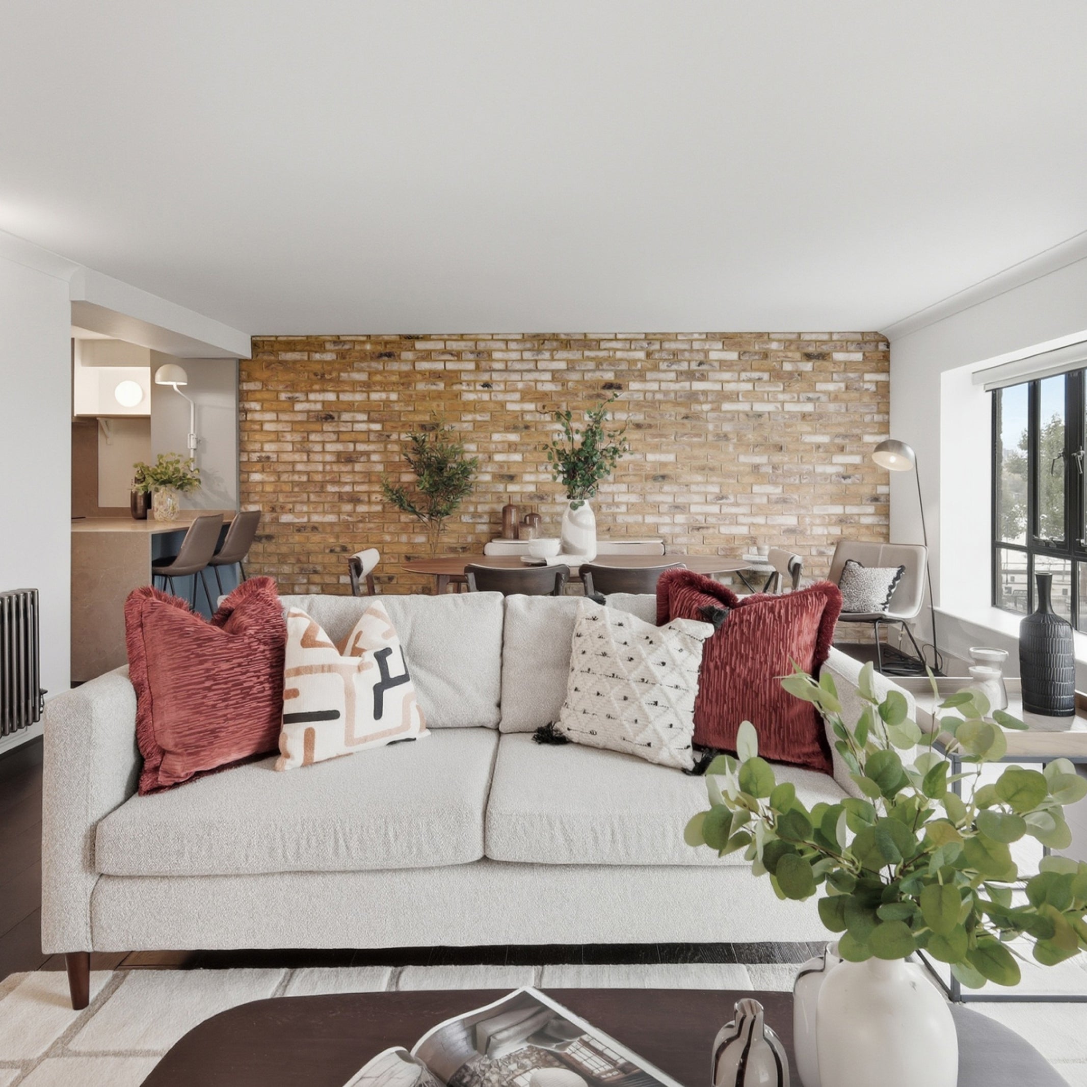 Features industrial finishes and a natural colour pallet inspired by the beautiful exposed brick wall.