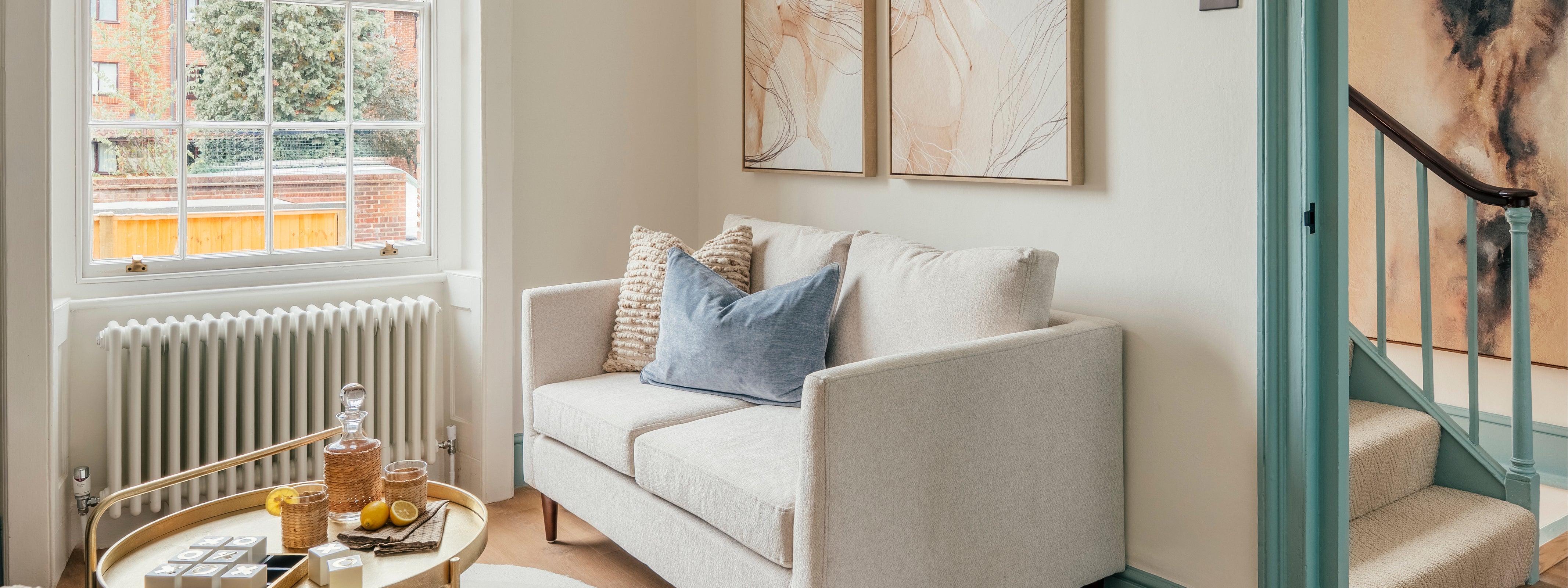We staged this four-bedroom listed town house that had been restored beautifully by the developers; ensuring we used high quality finishes throughout to reflect those of the property. We created zoned living, giving every space a function and purpose to really show viewers how they could utilise the space to it's best potential. The scheme was kept light and bright to create an airy feel and make it feel as spacious as possible.