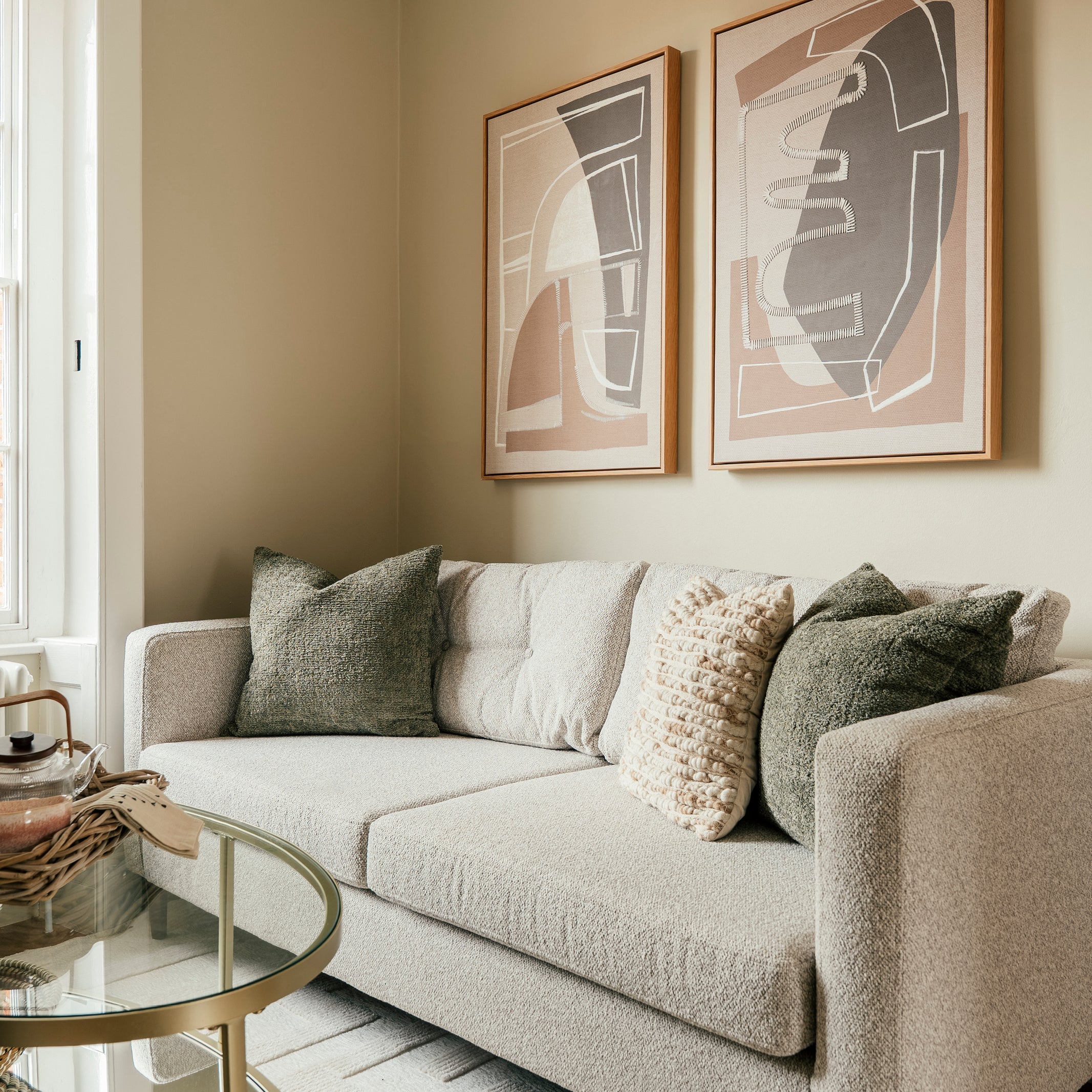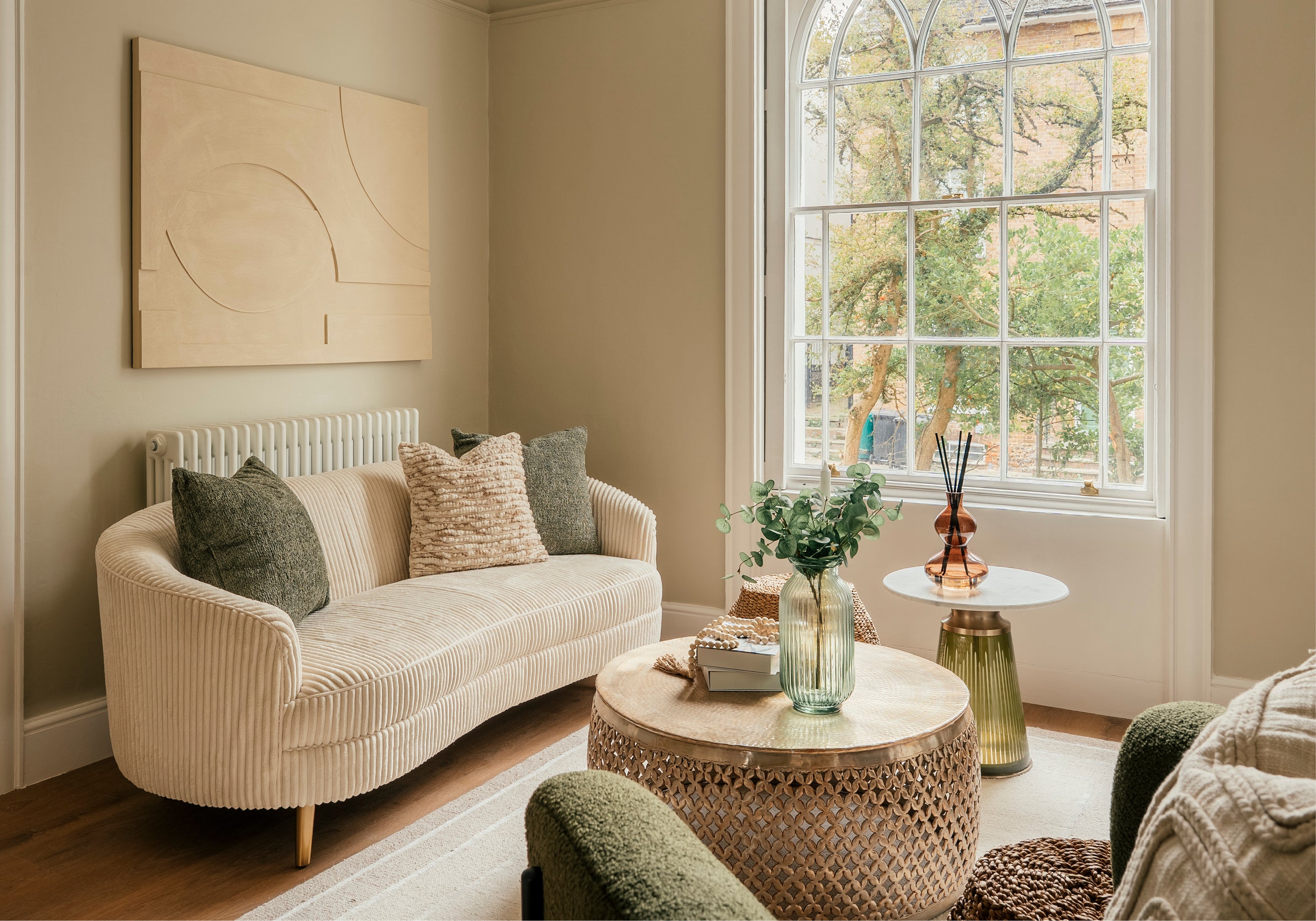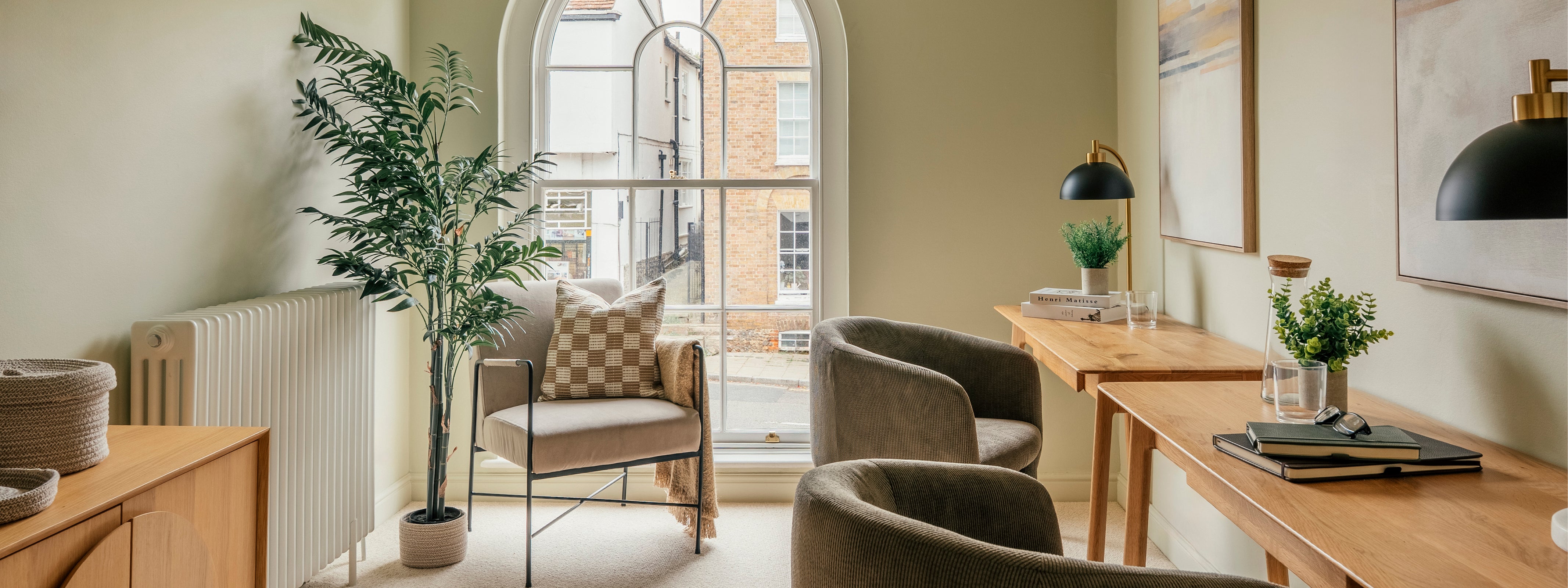 We staged this three-bedroom listed town house that had been restored beautifully by the developers; ensuring we used high quality finishes throughout to reflect those of the property. We created zoned living, giving every space a function and purpose to really show viewers how they could utilise the space to it's best potential. We loosely linked the scheme to the property we staged next door so there was consistency between the two while still giving them their own identities. A mixture of soft textures and woven rattans were used to give this property the ultimate homely feel.